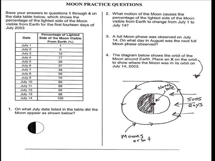 AIM: Where’s the Moon? ? DO NOW: Mr. Leone walks to school everyday. He always leaves his house at 7: 00 am and passes Mr. Zinke’s house at 7: 20 am. At about 7: 40 am he passes old man Bieler’s house and arrives at school at 8: 00 am sharp. If Mr. Leone leaves for school 20 minutes later today at what time will he pass the 2 houses and arrive at school? ? ?