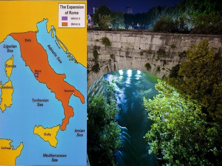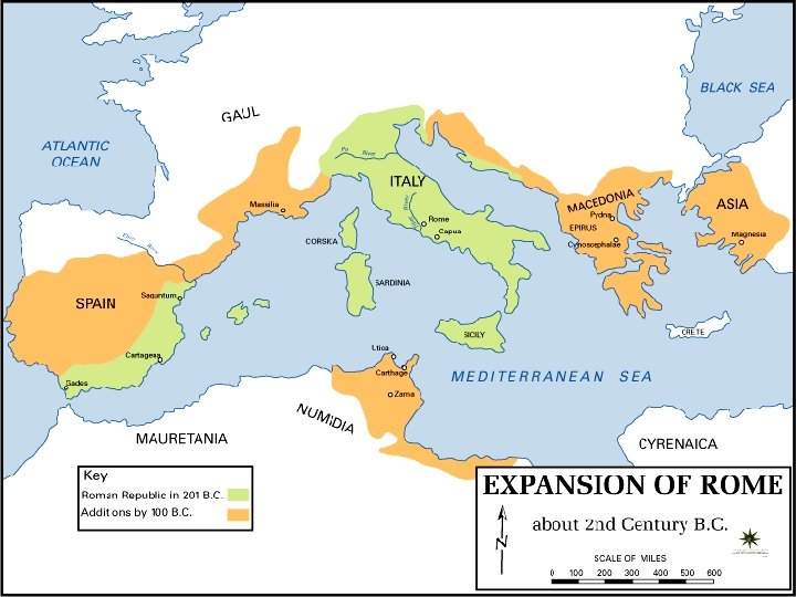 Roman Expansion A) By 270 BCE Rome had expanded into all of the Italian peninsula. They did this by 1. Building an extensive road system 2. Standing, efficient and well paid army 3. Made many conquered people citizens, and respected local culture. *Citizens had to pay taxes & perform military service. 4. Gained control of most of the Mediterranean after fighting the Phoenicians in the Punic Wars.