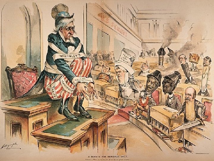 Business Buys Influence Tariffs became and import issue in the 1880 s. • Many questioned the need to maintain high tariffs in the 1880 s, when large American companies were fully capable of competing internationally. • Other nations began imposing tariffs on the United States – this hurt farmers trying to sell their surplus of goods. Election of 1888 – Republicans gain control of both houses of Congress and the White House. • Passed the Mc. Kinley Tariff - to promote American industry from foreign competition and encourage consumers to buy American made goods. • Instead, it helped trigger a steep rise in the price of all goods that angered many Americans.
