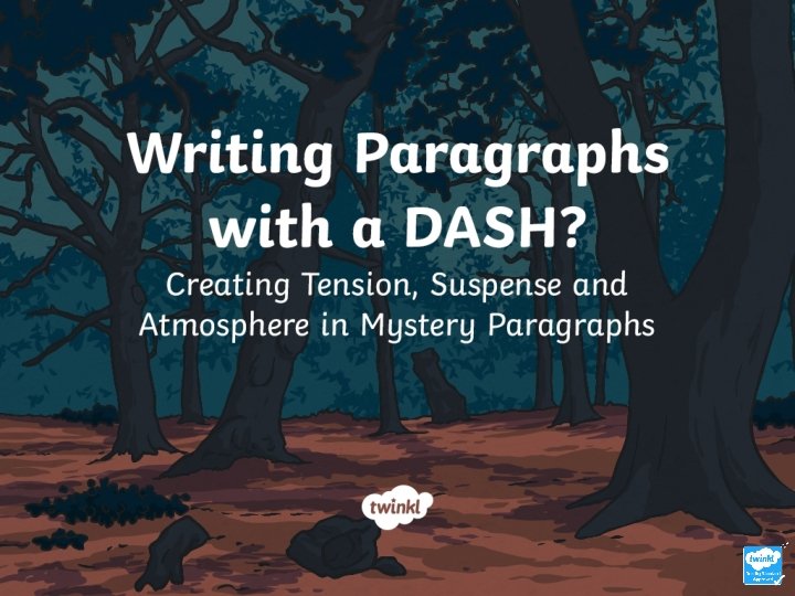 Can You Work with a DASH? Now, it’s your chance to write your very own mystery DASH? description. Look at this photograph. Can you write a DASH? paragraph that is full of tension, suspense and atmosphere? D escription Action S peech H ow is your character feeling? ? Cliff hanger or rhetorical question
