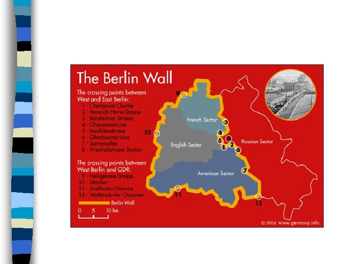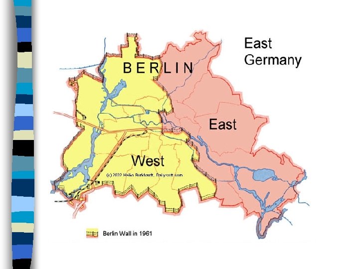 The Berlin Crisis 1961: 20% of Germans flee to W. Berlin – Impact on East? n Khrushchev: close access roads to W. Berlin n – JFK refuses n RESULT: USSR isolates W. Berlin from E. Germany w/ Berlin Wall n Hot-line & Limited Test Ban Treaty