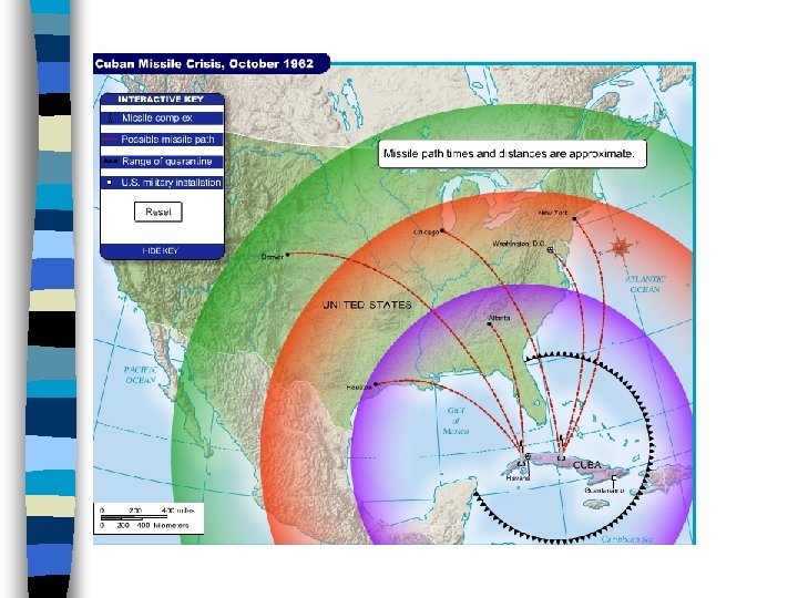 The Cuban Missile Crisis n Khrushchev sends weapons to Cubaincluding nukes n JFK warns USSR: missile attack will trigger war n USSR avoids confrontation at seareach agreement with U. S.