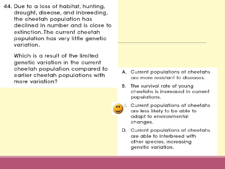 1. Natural Selection When nature chooses the most favorable variation Must have: ◦ Struggle to Survive - a selection pressure ◦ Variation in the Population Those individuals that are most fit to overcome the selection pressure will survive the best, reproduce, and pass down their adaptations! ☺ Ex: giraffes struggle to reach leaves → only tall giraffes survive and reproduce