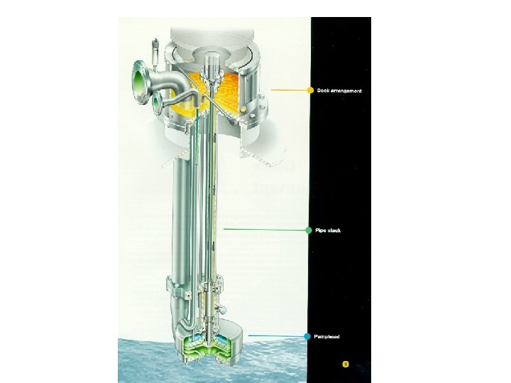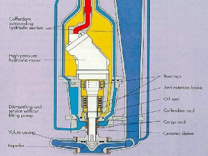 Pump Body • It is welded or flanged to the pipestack. • The hydraulic motor is very compact and located inside the pumphead and surrounded by return hydraulic oil. • Short independent shaft supported by bearings lubricated by hydraulic oil • Connected to the impeller.