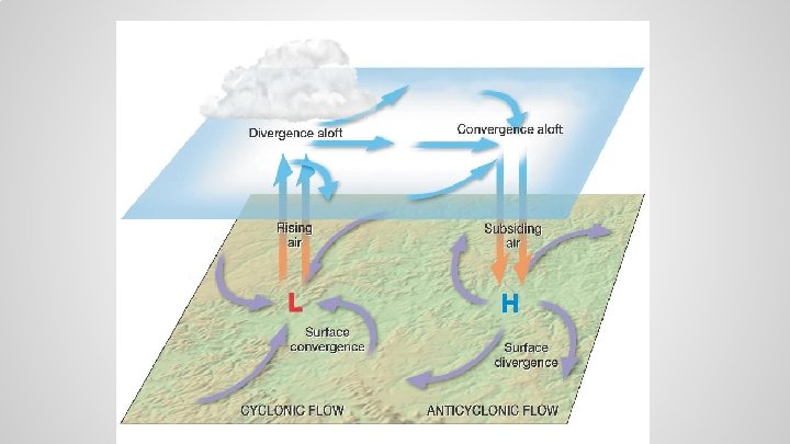 Depressions when air warms, its density decreases, the air mass becomes lighter and rises, leaving an empty space beneath it. The space becomes an area of low pressure called a. . .