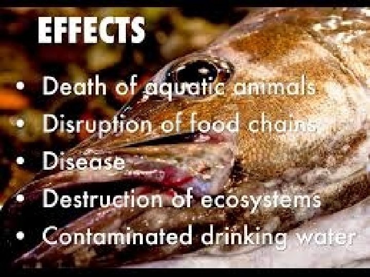 • Water pollution affects plants and organisms living in these bodies of water. • In almost all cases the effect is damaging not only to individual species and populations, but also to the natural biological communities.