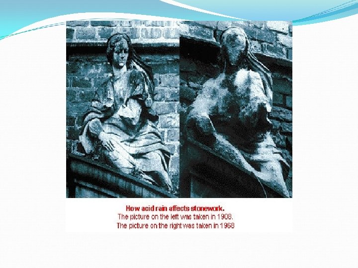 Acid Rain the process by which acids with a p. H normally below 5. 6 are removed from the atmosphere in rain, snow, sleet or hail When Sulfur and Nitrogen combine with oxygen to for sulfur dioxide and nitrogen oxide Mix with vapor in the air to become acid rain