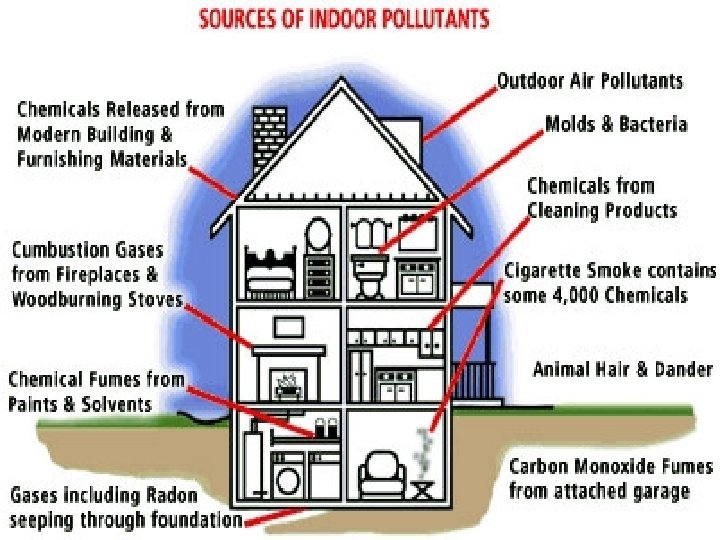 Indoor Pollutants Can be pollutants from outside or chemicals used inside buildings According to the WHO 1 in 6 people breath unhealthy air