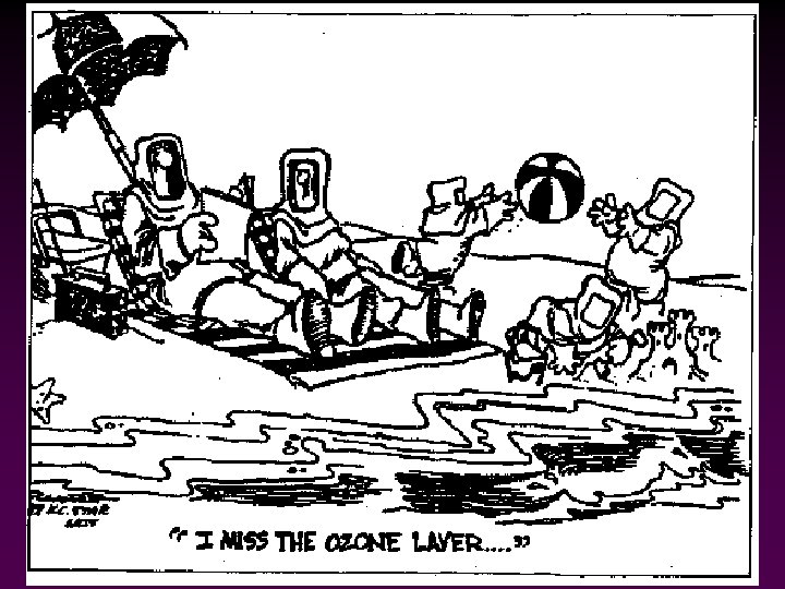 Depletion of ozone • • increase incidence of sunburn and skin cancers increase incidence of cataracts suppression of the immune system lower crop yields decline in forest productivity increased breakdown of materials (paints, plastics, outdoor materials) reduction in phytoplankton productivity