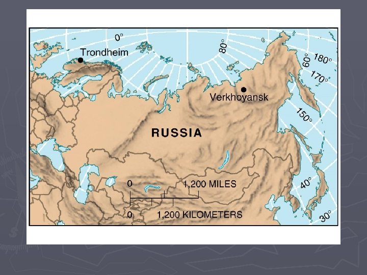 4. Coastal vs. interior locations ►Water bodies have a moderating effect on temperature.
