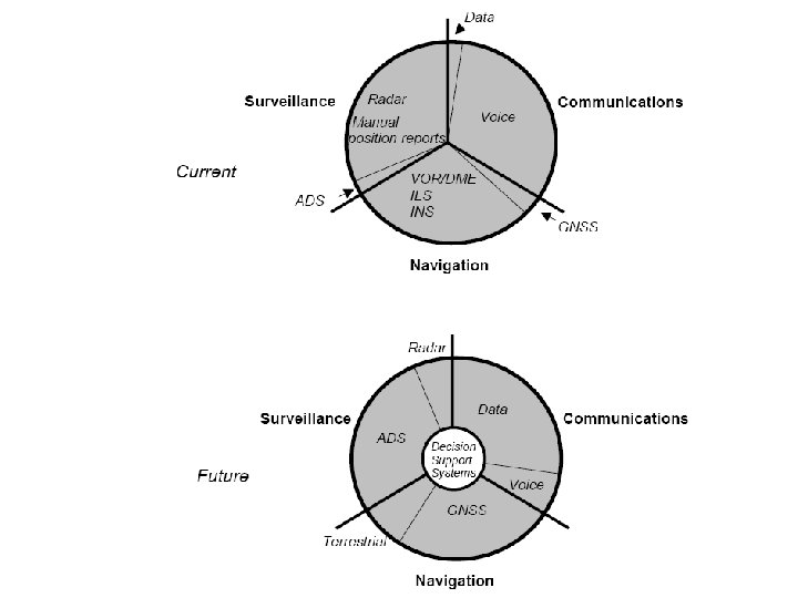 Communication in air traffic control and its role The communication element of CNS/ATM systems provides for the exchange of aeronautical data and messages between users and/or automated systems. • Communication systems are also used in support of specific navigation and surveillance functions. There are some fundamental differences between conventional aeronautical communication systems and those forming parts of new CNS/ATM systems. Key features of the new systems are: • Most routine communications are done by data interchange; • Voice communications are mainly used in non-routine and emergency situations; • Emphasis is placed on global connectivity and operation.