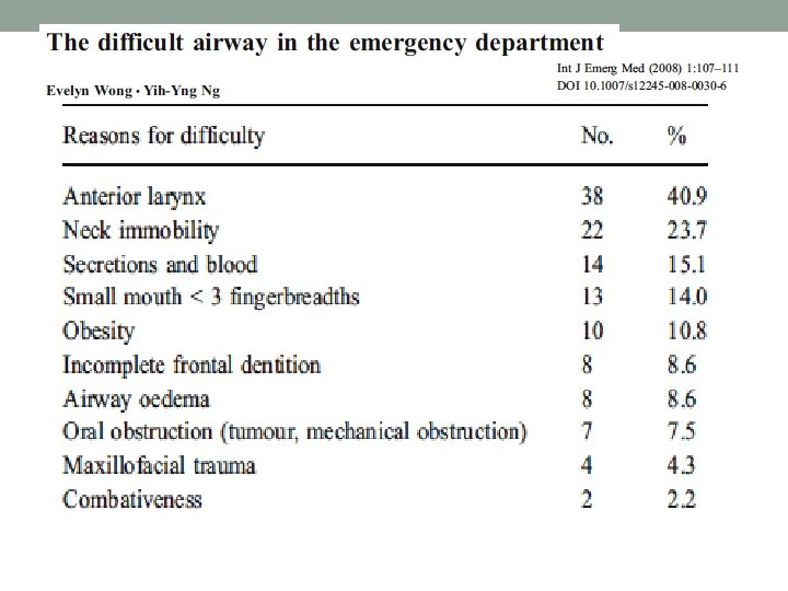 References • Corral L, Casimiro JF, Ventura JL, Marcos P, Herrero JI, Manez R. Impact of non-neurologic complications in severe traumatic brain injury outcome. Critical Care 2012; 16: R 44. • Karanjia N, Nordquist D, Stevens R, Nyquist P. A Clinical Descriuption of Extubation Failure in Patients with Primary Brain Injury. Neurocritical Care 2011; 15: 4 -12. • Rincon F, Ghosh S, Dey S, Maltenfort M, Vibbert M, Urtecho J, Mc. Bride W, Moussouttas M, Bell R, Ratliff J, Jallo J. Impact of Acute Lung Injury and Acute Respiratory Distress Syndrome After Traumatic Brain Injury in the United States. Neurosurgery 2012; 71: 795 -803. • Wong E, Yih-Yng Ng. The Difficult Airway in the Emergency Department. Int J Emerg Med, 2008: 1: 107 -111.