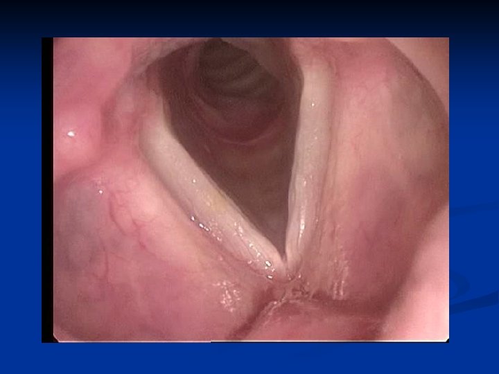 Diagnosis n Flexible nasopharyngolaryngoscopy n Nose/Nasopharynx n NP stenosis n Masses, tumor n Supraglottis n Structure abnormalities n Laryngomalacia n Glottis n VC mobility n Webs/masses n Immediate subglottis