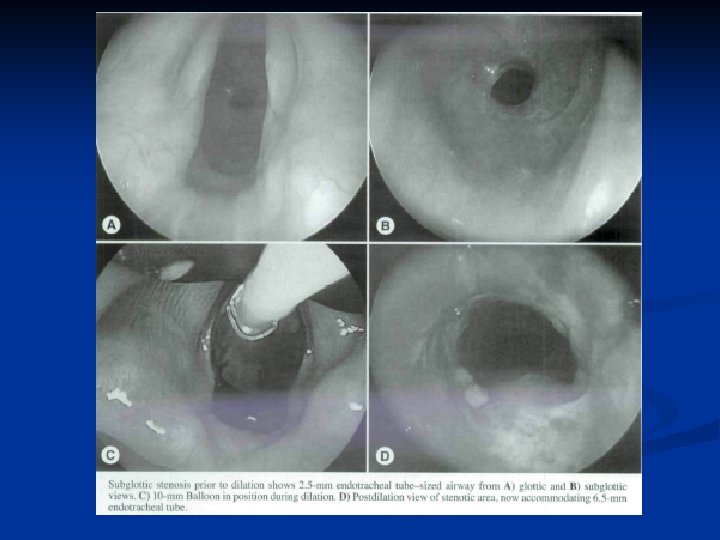 Endoscopic Approach Simpson, et al (1982) n Dilatation employed 8/60 n 0/49 laryngeal n 4/6 tracheal n 4/5 combined