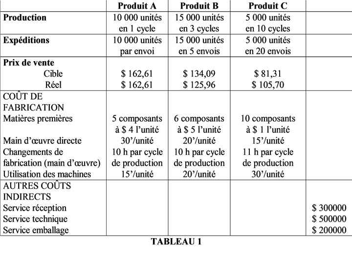 Rappel du contexte • Les hypothèses de travail • les coûts de main-d’oeuvre liés aux changements de fabrication et les coûts liés à l’utilisation des machines sont considérés comme des coûts indirects, au même titre que les autres coûts indirects. – L’ensemble des coûts indirects est ventilé sur les trois produits sur la base des coûts totaux de main d’oeuvre directe.