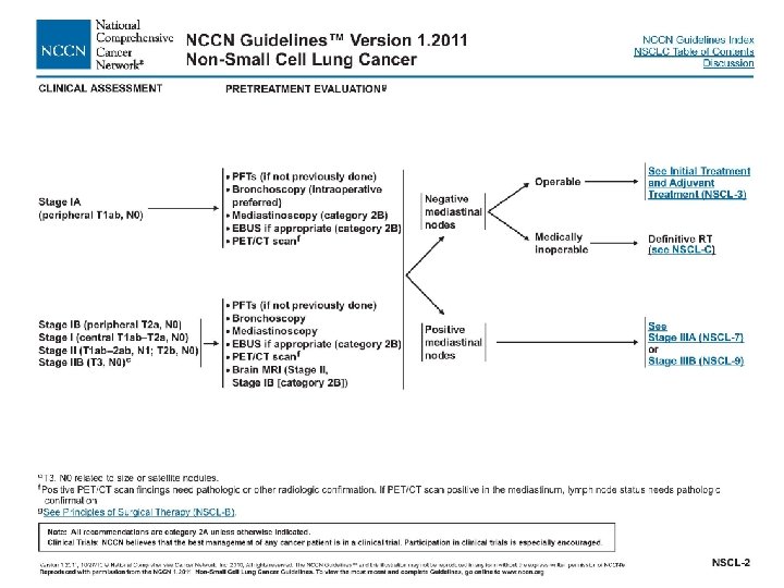 Lung Case # 1 Clinical Staging • Clinical Stage correct answer – – T 1 a N 0 M 0 Stage Group IA • Based on stage, treatment is selected • Review NCCN treatment guidelines for this stage