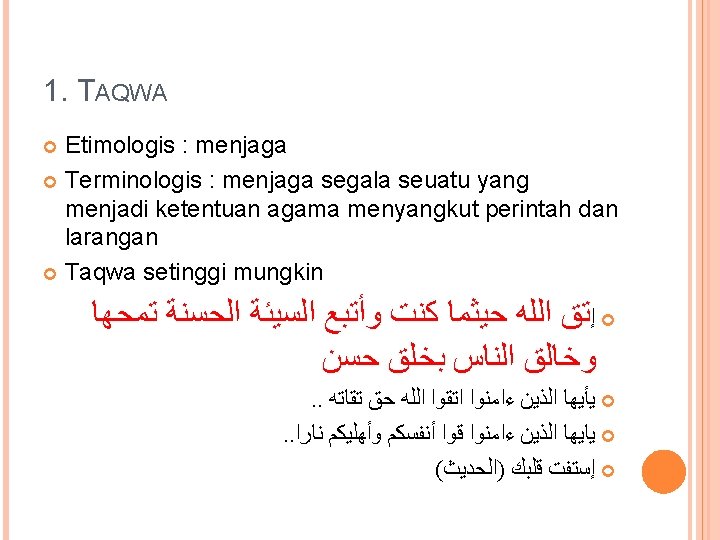 8. TAUBAT Etimologis : kembali Asal manusia : Tuhan Taubat yang sesungguhnya : taubat nasuha