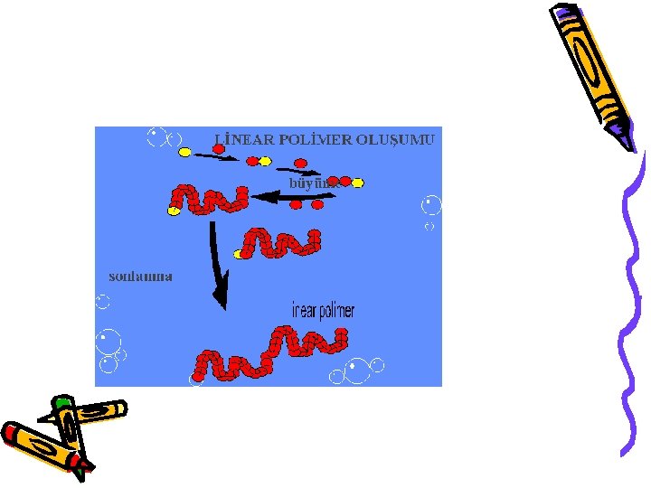 Kullanılan Polimerlerin Özellikleri nelerdir? • Çok sayıda monomer birimlerin bir araya gelmesiyle polimer zincirleri elde edilir. • Polimerler düz zincirli olabileceği gibi dallanmış yapıda olabilir. • Dallanmış yapılar Polimer ana zincirine bağlanmış yandalların başka ana zincire bağlanmasıyla çapraz bağlı polimerler oluşur.