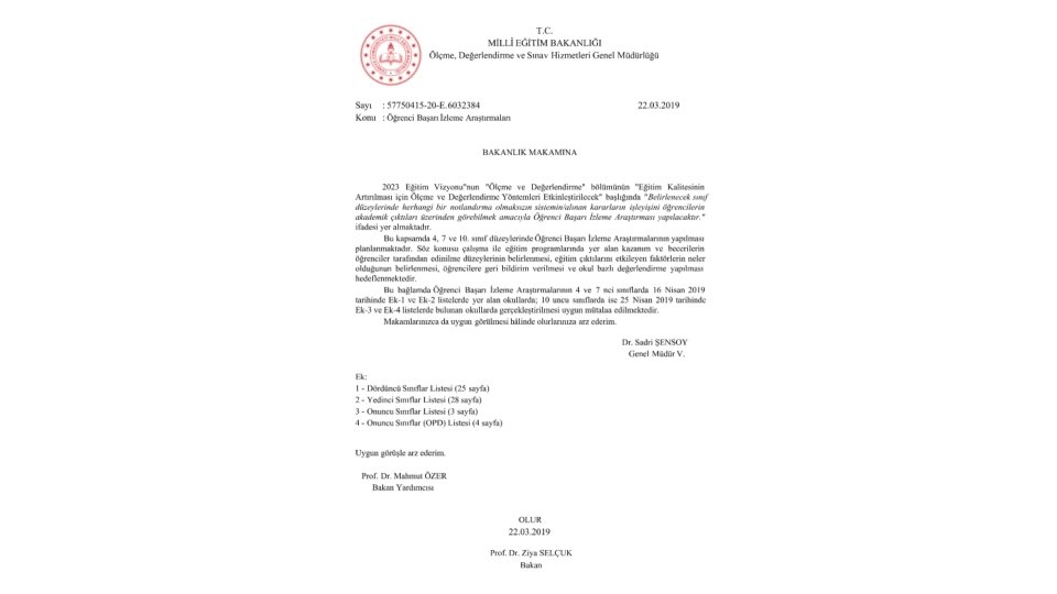 Belirlenecek olan sınıf düzeylerinde sistemin ve alınan kararların işleyişini, öğrencilerin akademik çıktıları üzerinden görmek amacıyla herhangi bir notlandırma olmaksızın “Öğrenci Başarı İzleme Araştırması” yapılacaktır.