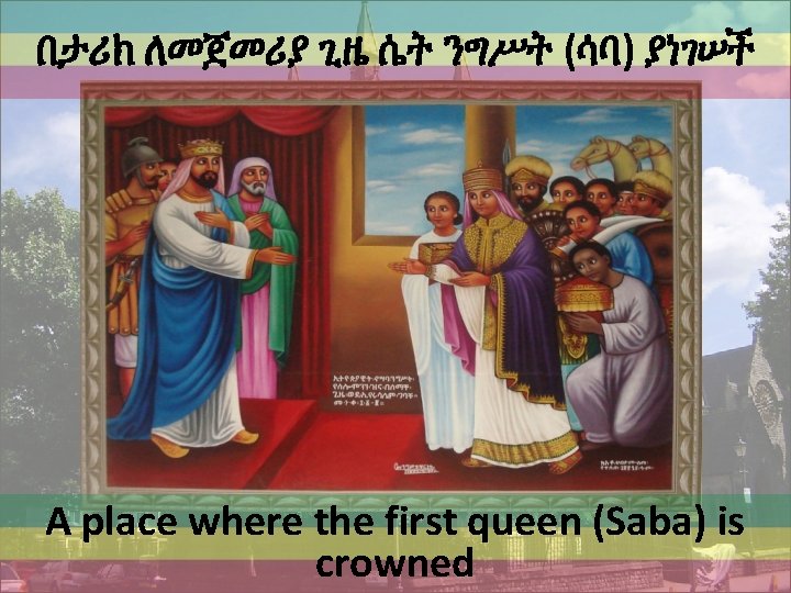 ጽላተ ሙሴና ግማደ መስቀልን በቅርስነት የያዘች A place where it holds the ark of covenant and part of the Holy Cross.