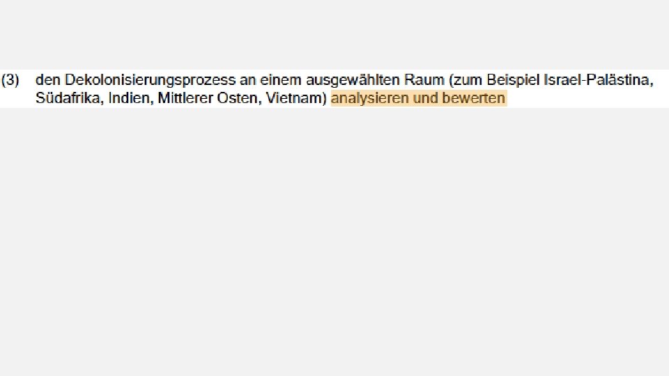 „Die deutsche Geschichtsschreibung […] hat den Prozess der Dekolonisation weitgehend verschlafen. “ (Eckert, A. : Spätkoloniale Herrschaft, Dekolonisation und internationale Ordnung, in: Af. S 48 [2008], S. 3– 20, hier: S. 3) UND FÜR DIE UNTERRICHTSPRAXIS – z. B. : Praxis Geschichte 2/2004: Dekolonisation Geschichte lernen 99/2004: Entkolonisierung Brückmann, A. : Von den Kolonien zur „Dritten Welt“. Wege und Probleme der Entkolonisierung. Kursmaterialien Geschichte SEK II, Stuttgart 1999 Fenske, U. / Groth, D. / Guse, K. -M. / Kuhn, B. P. [Hgg. ]: Kolonialismus und Dekolonisation in nationalen Geschichtskulturen und Erinnerungspolitiken in Europa, Frankfurt a. M. 2015 Aber auch …