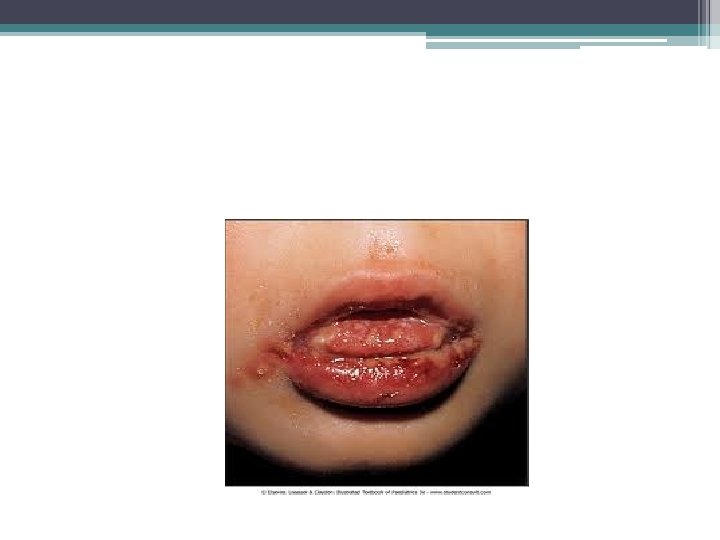 Tedavisinde: • Genelde palyatif plak inhibitör ajanlar (klorheksidinli gargaralar) bakteriyel süperenfeksiyonu önlemek için kullanılabilir. • lezyonlar bir iki hafta içerisinde kaybolur. • Gingival enf. Azaltmak için OHE det çok rahatsızsa topikal anestezik ağrı kesici bol sıvı alımı gerekli