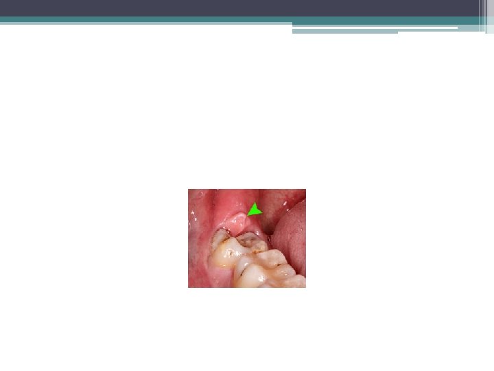 Akut Apseler • • • Ağrılı Kırmızı Ödemli Düz parlak yüzeyli Gingival dokuların ovoid şekilde şişmesi ile karakterizedir. • Eksuda hafif bir basınçla çıkar, perküsyona hassas , sokette yükselmiş gibi hissedilir. Ateş rejyonel lenfadenopati olabilir.