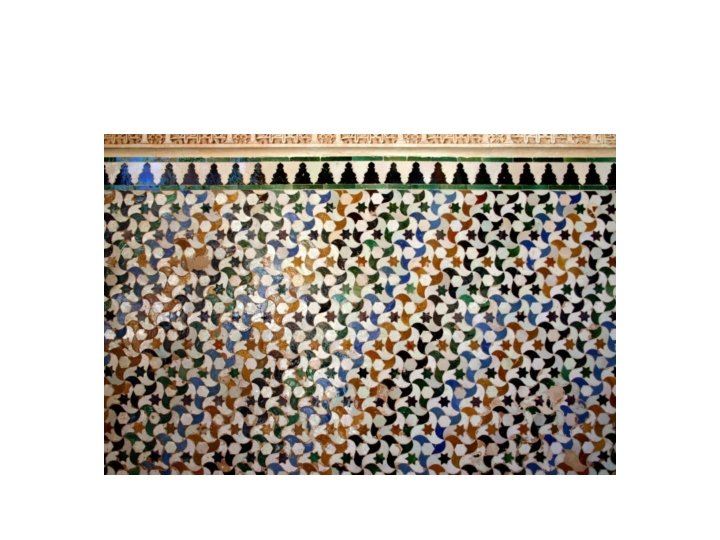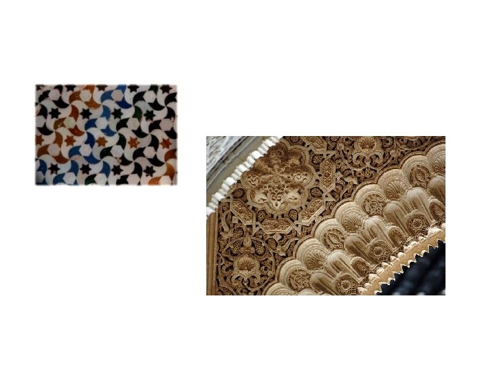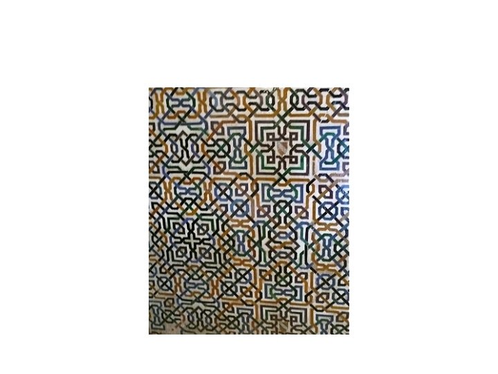 • Artistic tradition of Islamic Spain had a prescribed aesthetic influenced by conquered regions (Roman, tribal, Byzantine, and West Asian styles) • Use of Arabic calligraphy was the preferred ornamentation • Use of animals and people were discouraged due to religious beliefs • Use of complex geometric or vegetal inspired patterns were common • Symmetry and mathematical order were aesthetic qualities linked to religion