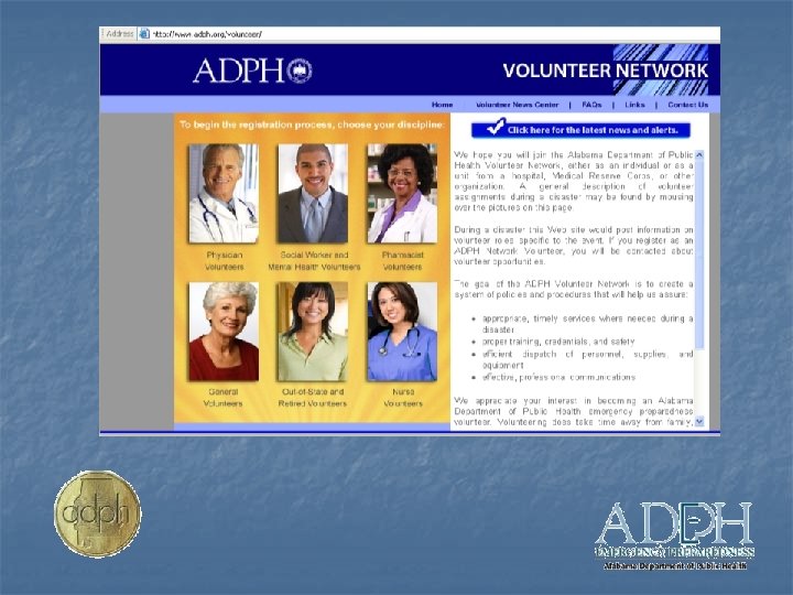 Alabama Department of Public Health Center for Emergency Preparedness OVERVIEW Volunteer Symposium May 6, 2010 Montgomery, Alabama