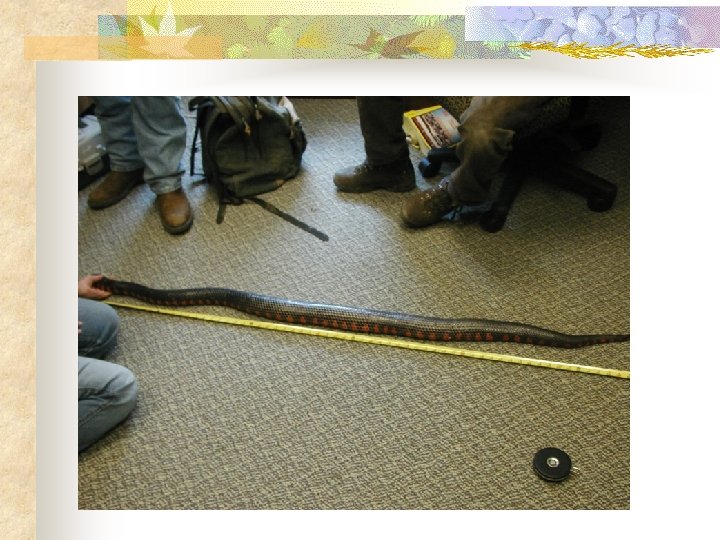 Superorder Serpentes Snakes Some 2700 species. Found on all continents except Antarctica. Elongated scaly body with no limbs, external ear openings, or eyelids. Periodically shed outer layer of skin. Of the 115 species that may be seen north of Mexico, 17 species are venomous.