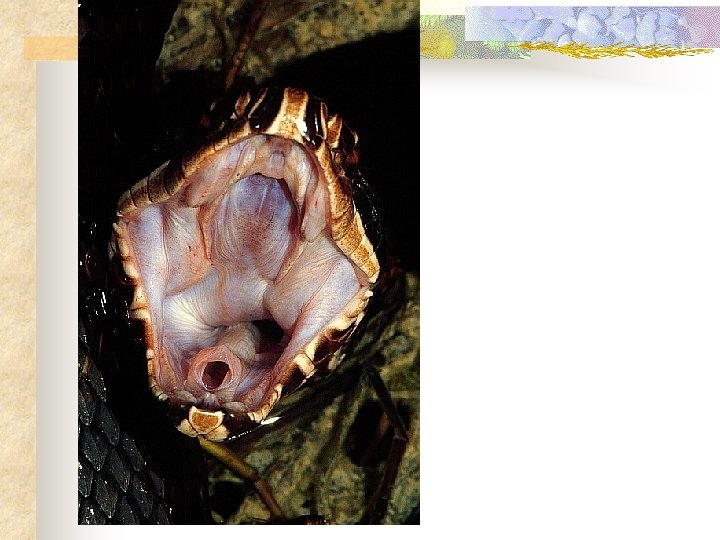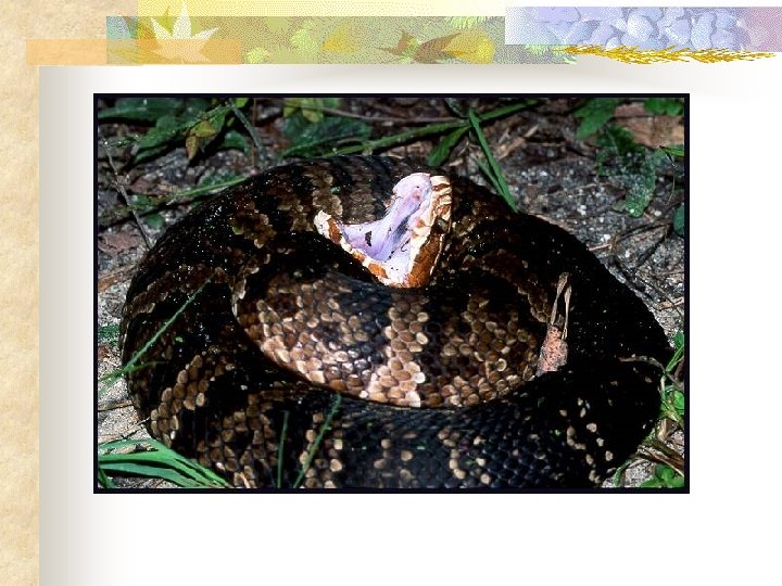The common name of the cottonmouth comes from the white interior of the mouth.