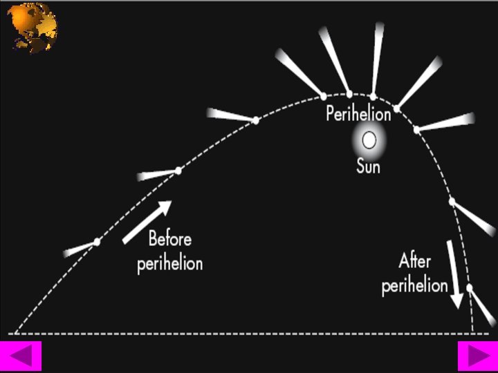 • Komet adalah benda angkasa yang terdiri dari batuan yang disemuti gas dan es • Komet terdiri bagian kepala dan ekor • Bagian ekornya selalu menjauhi matahari • Komet memiliki orbit sendiri yang secara periodik dapat dilihat dari bumi seperti komet Halley yang muncul setiap 76 tahun sekali (terakhir muncul tahun 1986).