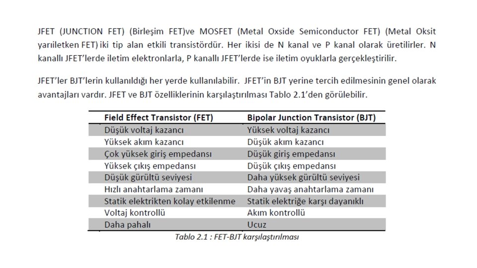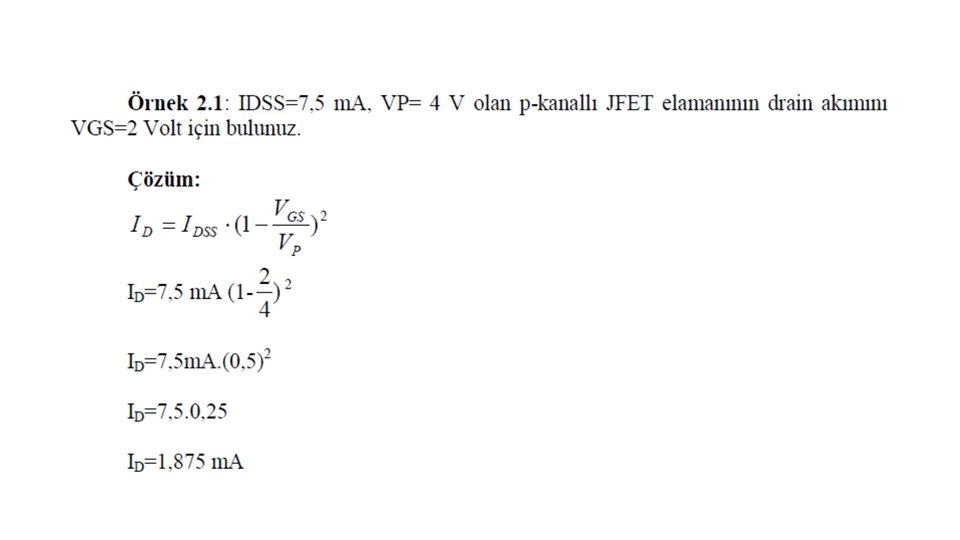 Alan Etkili Transistr ve Yaps JFETler kendi ierisinde