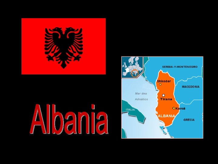 Albania: Así le decimos nosotros (Castellano), su nombre viene del latín "ALBUS" que significa blanco, en alusión a las cumbres nevadas del montañoso país; pero en albanés se le dice: SHQIPËRIA, que significa " TIERRA DE AGUILAS"
