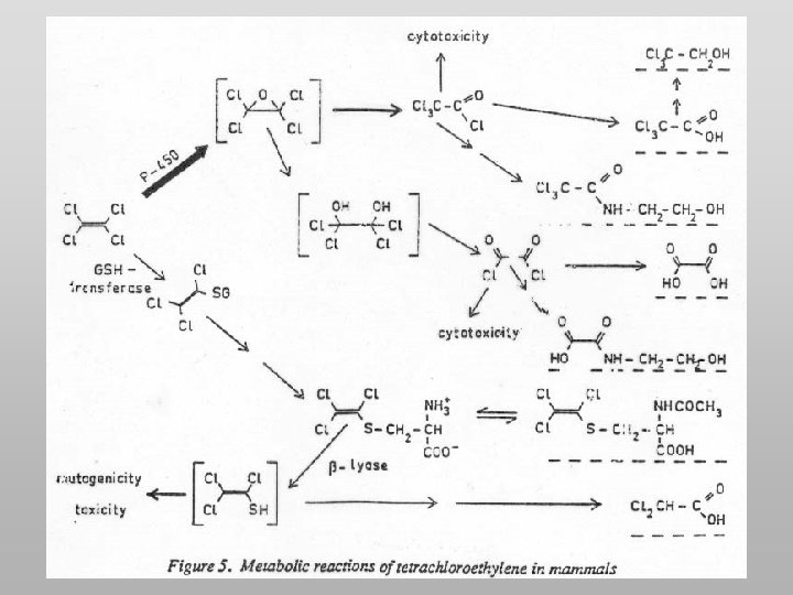 TETRACLOROETILENE METABOLISMO Il metabolismo del tetracloroetilene è molto modesto: TCA 1 -2% ossalato 0, 2 -0, 3% cistein-coniugati 0, 02 -0, 04%