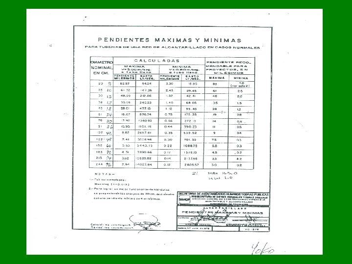 CHEQUEO DE VELOCIDADES Y DE PENDIENTES CON α IR A LA TABLA II Y OBTENER vmax/Vlleno =0. 29 Hallar Vmax=0. 29 x 2. 29 m/s=0. 66 m/s >0. 30 ok