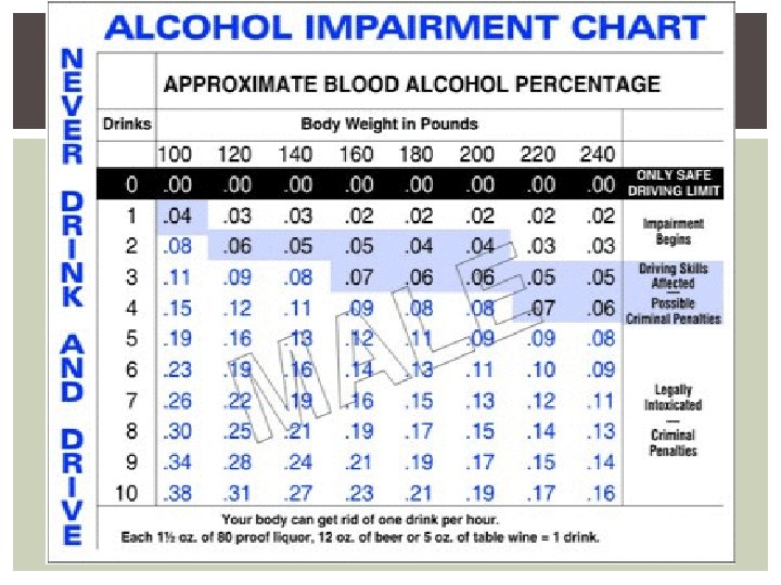 BAC Blood Alcohol Content § The amount of alcohol in the blood § Measured in a %