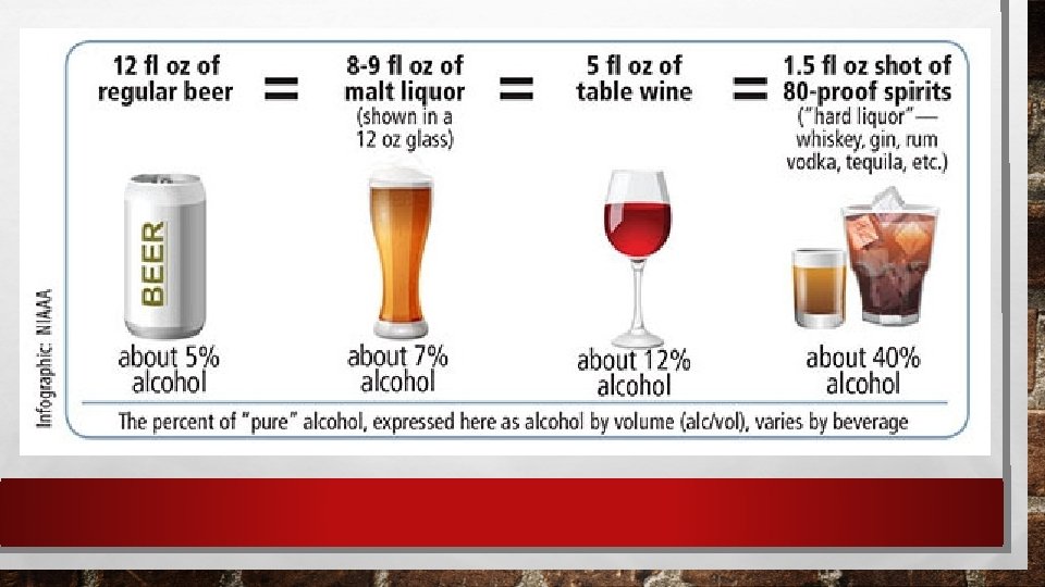 FERMENTATION • MICROORGANISMS CALLED YEAST FEED ON THE SUGARS IN FOODS SUCH AS MALTED GRAINS, GRAPES OR BERRIES • DURING THE PROCESS CARBON DIOXIDE AND ALCOHOL ARE PRODUCED • WHAT HAS MORE ALCOHOL? • BEER, LIQUOR OR WINE?