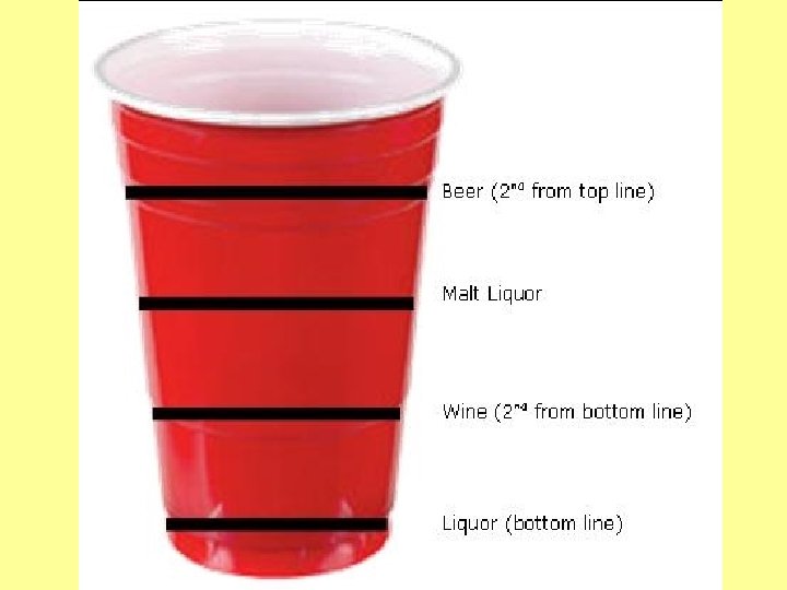 ONLY TIME WILL SOBER A PERSON UP!! • Myths to sober a person up: – Increase their circulation (jumping jacks, brink walk…) – Give them something to eat/drink (bread, water, coffee…) – Throw cold water on them (put them in a cold shower/bath) • What to do: – Keep an eye on them – Do not let them drive – If they need to lie down, place them on their side with their airway unobstructed – Monitor their breathing – Remember…your body can only break down alcohol at the rate of 1 standard drink per hour!