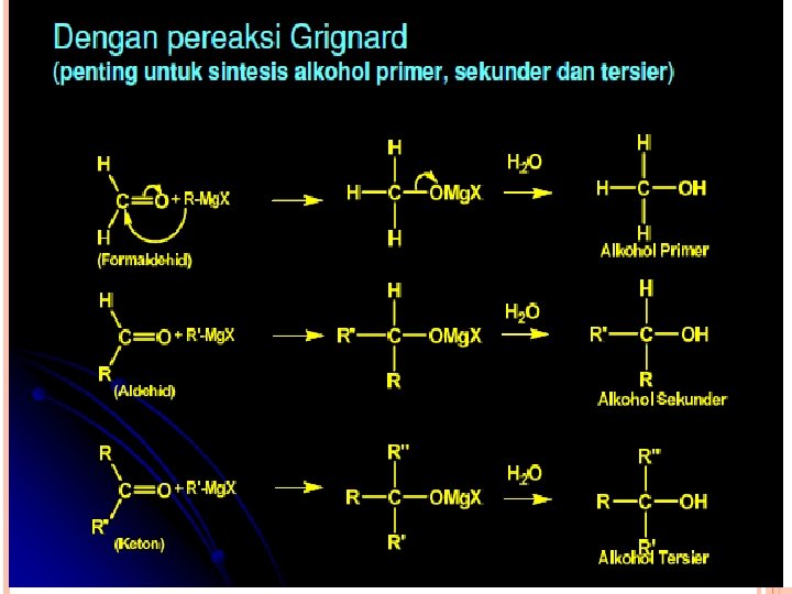 Adisi Grignard Produk Alkohol primer Alkohol sekunder Alkohol tersier