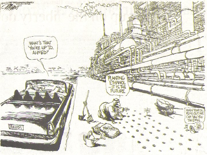 Algae? • How? – Grow colonies in presence of sunlight – Starve them of nitrogen – Filter out cell membranes and organelles – Solvent to separate out the fats – Purify fats, evaporate solvent • Aquaflow in New Zealand • Cold pressing: how oil is retrieved from plants • 140 billion gallons of biodiesel every year – Soybeans: 3 billion acres – Canola: 1 billion acres – Algae: 95 million acres – only would need about size of Maryland