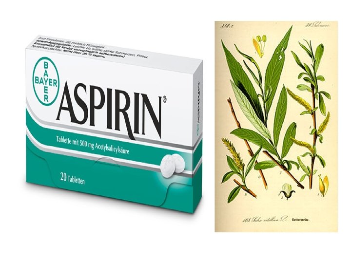 History • • Salicin, derived from Willow Bark, had been used since the time of the ancient Greek philosopher, Hippocrates, to relieve dull aches and pains. Salicin is metabolized by the body to produce salicylic acid, which has similar anti-inflammatory properties to that of aspirin, but causes extreme stomach discomfort, even stomach bleeding. In 1897, Felix Hoffman, a researcher from Bayer AG synthesized acetylsalicylic acid from salicin derived from meadowsweet. In 1919, Bayer AG lost Aspirin as a registered trademark in the US, the UK, France, and Russia due to war reparations imposed by the Allies.