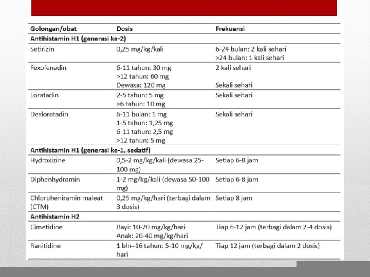 u Antihistamin H 1 generasi 1 dan 2, antihistamin H 2 u Kortikosteroid u Epinefrin u Leukotriene receptor antagonist