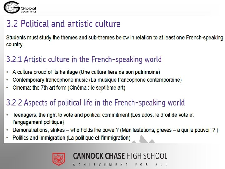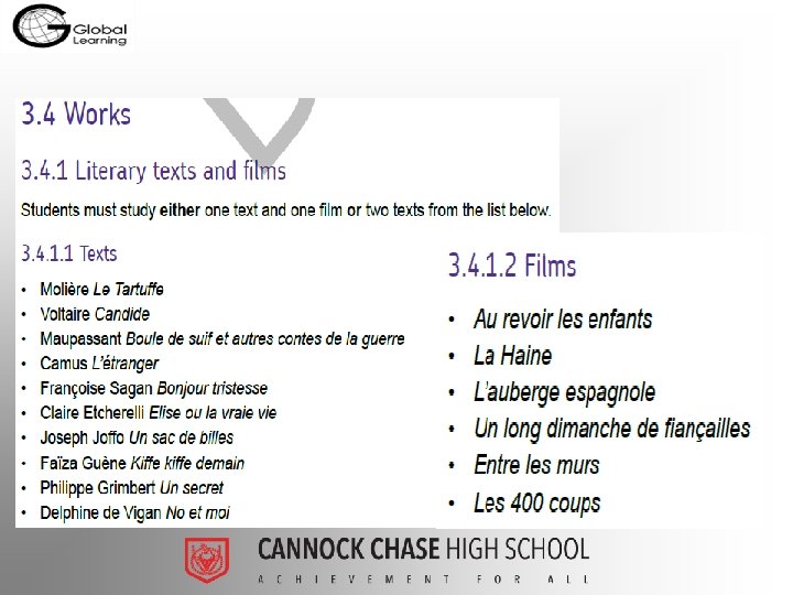 AS/A level French • Entry Requirements: A grade 6 or above at GCSE • Course Name & Exam Board: AS/A Level French - AQA