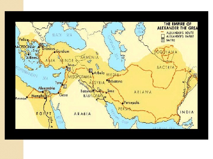 Having an empire �Alexander freed Ionian city-state, Egypt from Persia ◦ Egypt welcomed Alexander ◦ Had the biggest empire ever, until then, only in 11 years �Alexander died in 323 B. C. , less than 33