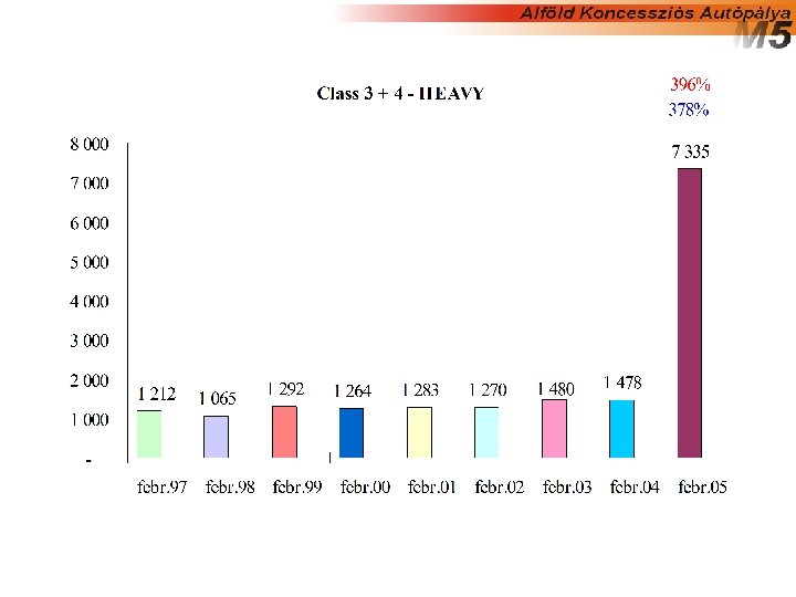 • Véleményezett sávzárás Események mely esetekben a sávzárás levonással van büntetve – Nagy méretű kátyú (>1 m 2) Üzemeltető felelősége. – Útburkolati kritériumok RST mérés, komoly határértékek: Egyenetlenség (IRI) határérték 1, 7 mm/m Nyomvályú határérték 9 mm Ezen feltételek érzékenyen reagálnak a nehézgépjármű forgalomra és a túlsúlyos járművekre Ez a leglényegesebb kockázat, amelyet a Koncessziós Társaság vállal, (i) komoly levonások lehetségesek (ii) 20% levonás (összesítve) megindítja a fokozott ellenőrzést