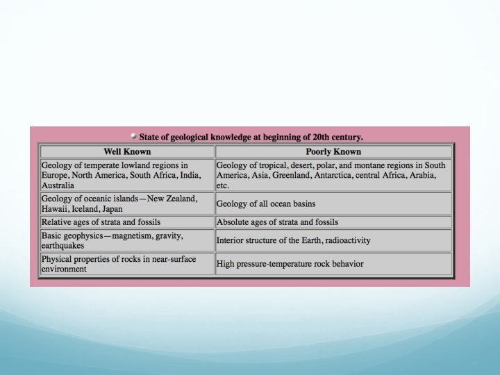 Why aren’t new ideas accepted? Before his time – Wegener's hypothesis moved ahead of confirming evidence too fast. Many previously unrelated observations were combined into a large theoretical jump. This is contrary to the normal progressive, step-by-step development of science. Youthful outsider – Wegener was a man of many talents, but he had no formal training in geology. Thus, he had no credentials. At the same time, he had no preconceived position to defend or prove. At the beginning of the 20 th century, no scientist was recognized until at least age 40; Wegener was in his early thirties when he first proposed continental drift. Scientific inertia – Geology could not remake itself overnight. There was natural resistance to change, to accepting radical new ideas. Geologists had vested interests in their work and were reluctant to admit past misinterpretations of fundamental significance.