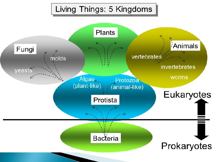 • Following a conception of sub division of living organisms into five kingdoms (Monera, protista, fungi, animalia, and plantae). • The prokaryotic algae (Blue green algae , cyanobacteria, cyanoprokaryota) are placed in the monera (Eubacteria) and the eukaryotic algae in the protista. the algae do not belong to kingdom of Plantae. Nevertheless , it is widely accepted (because of the photosynthesis characteristic )to interpret algae as (lower plants)in distinction to the vascular (higher plants). • The eukaryotic algae Posses membrane –bound organelles such as nuclei, Golgi body mitochondria and plastids. the prokaryotic cyanobacteria do not exhibit such organelles: ; their DNA and photosynthetic thylakoids lie free in the cytoplasm.