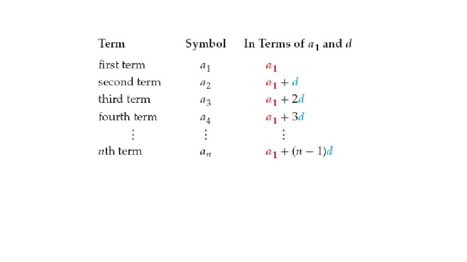 3 -5 Arithmetic Sequences as Linear Functions 1 Recognize Arithmetic Sequences A sequence is a set of numbers, called the terms of a sequence, in a specific order. Look for a pattern in the information given for the women’s crew team. Make a table to analyze the data. Since the difference between successive terms is constant, this is an arithmetic sequence. The difference between the terms is called the common difference d.