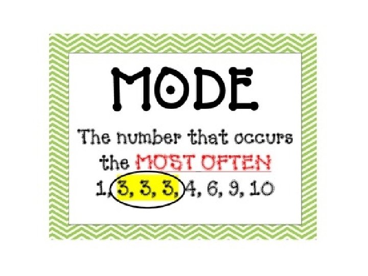 • Mode-the data item that occurs most often. • There can be one mode, more than one, or no mode.